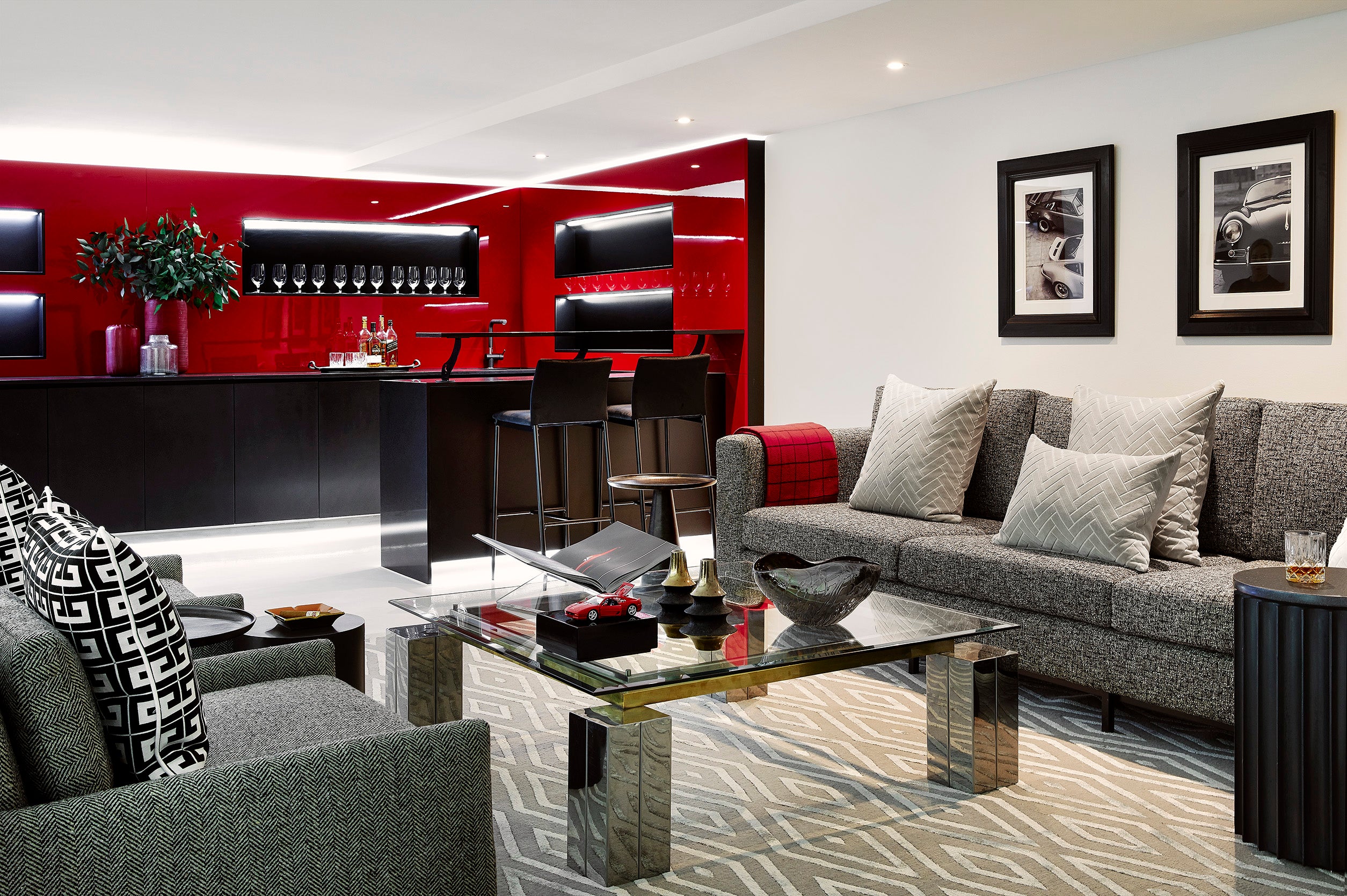 “I had a client who wanted a dedicated sports viewing room (think Formula One Grand Prix afternoons) built within their very large garage. This wasn’t just any garage: It was a stark white space with white floors, almost like an art gallery, designed to showcase his collection of supercars. My challenge was to create a smaller warm and welcoming entertainment area within this expansive, cool environment. To achieve this, I sourced some unique pieces, including a vintage petrol pump. We also incorporated Ferrari motifs into the custom joinery and metalwork, which was definitely a departure from my usual design approach—but it absolutely thrilled the client. On another project, I had a client with a home where everything was round or oval in shape. From the walls to the door handles, it really was quite something. I was tasked with creating a comfortable room just off their kitchen where they could relax and watch TV. The only problem was the curve of the walls, as putting a straight sofa would not have worked. I had to template the sofa on-site and match it to the exact curve of the wall, which wasn’t an easy task. In the end it came out great, but it certainly wasn’t the norm.” —Simone Hirsch, Simone Katherine Interiors, Cape Town, South Africa