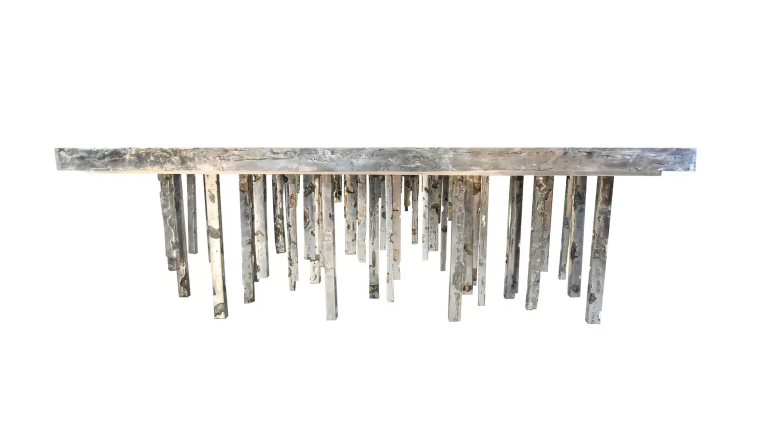 Homepage image: This table in zinc and petrified wood by John Brevard is the most expensive piece of furniture 1stDibs has sold. | 1stDibs