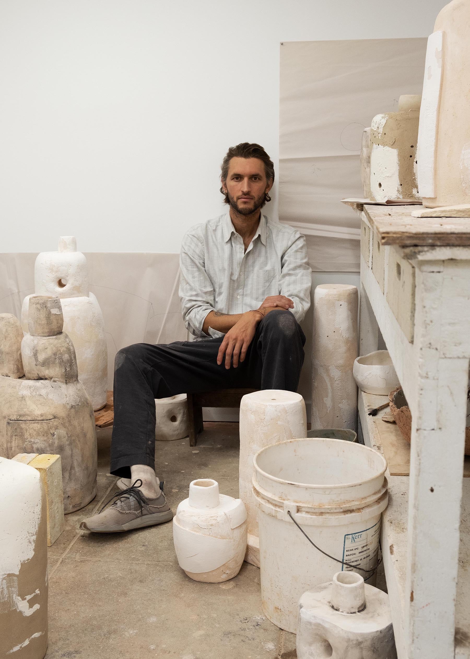In 2019, Schlesinger began making his lights in earnest, inspired by the natural elements of clay and paper, with a nod to famed 20th-century Japanese American designer Isamu Noguchi’s Akari lamps. The first batch he created sold out almost immediately, which gave him the vote of confidence he needed to go all in on this new venture. “I had a pop-up show at a friend’s gallery space and they sold really fast,” he says. “I was like, ‘OK, I can do this.’”