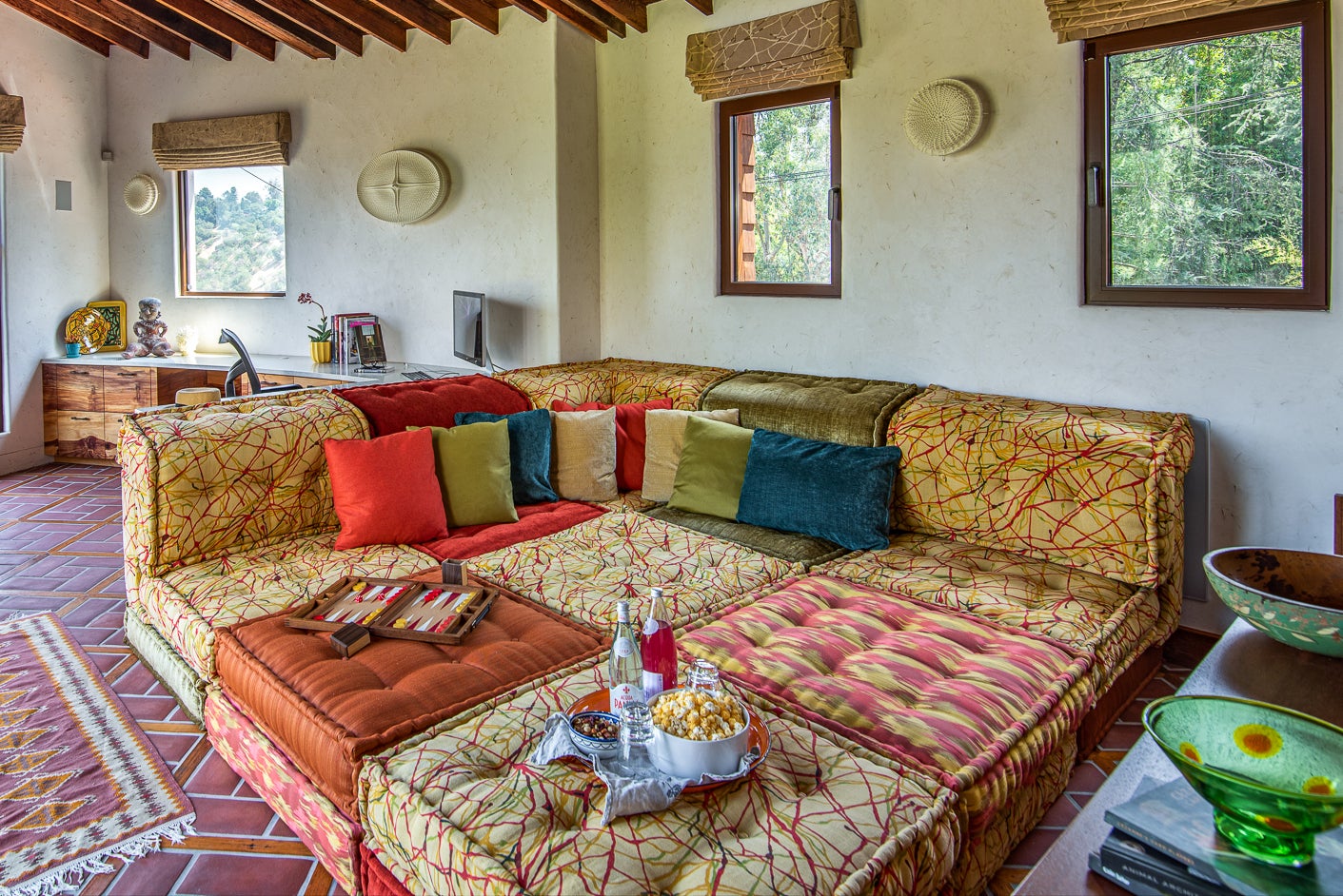 When finding sustainable and ethically made furnishings and decor proved challenging, CarbonShack came up with creative alternatives to typical procurement methods. Pallrand’s team has spent years researching and stockpiling sustainable materials, which are turned into bespoke pieces fabricated and produced by either the CarbonShack team or local artisans. That includes salvaged lumber collected from trees grown in Los Angeles that had to be cut down to make room for development—or, in one particularly unique case, a redwood bridge built in Northern California’s Marin County in the 1920s that was recently decommissioned, allowing the firm to swoop in and find new life for the otherwise dump-bound materials.