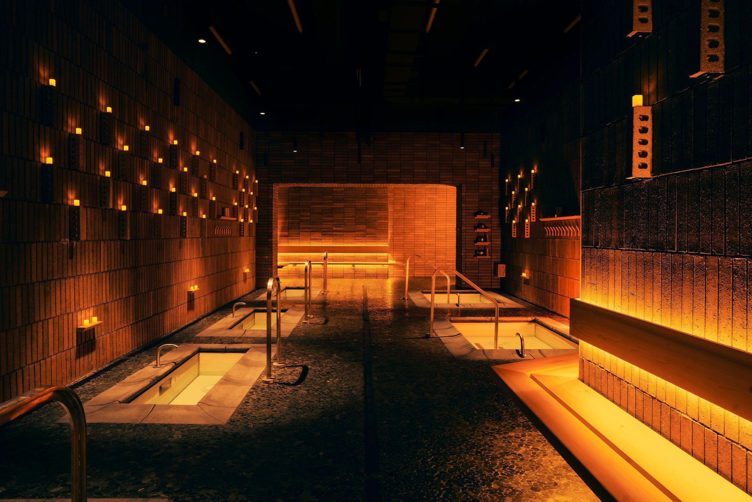 McQuaid Mitchell delivered. Guided by a mood board that referenced everything from nature and musical concerts to the movie Dune, she designed an otherworldly environment with cedarwood paneling on the walls and ceilings, floors made from a mosaic of river rocks, and warm atmospheric lighting that gives the impression of candlelight. The project was Othership, which debuted in New York’s Flatiron District last year to great fanfare, and has already spawned a host of additional locations currently under development in other major metropolitan areas.